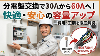 リフォーム【完全版】分電盤の交換で30Aから60Aへ容量アップ!費用と工期を徹底解説 「最近よくブレーカーが落ちて不便だ」「最新のIHクッキングヒーターを導入したい」とお悩みではありませんか?30Aから60Aへ容量アップするための分電盤交換は、現代の電化生活を快適にするための有効なリフォームです。 この記事では、分電...2026.04.01リフォーム